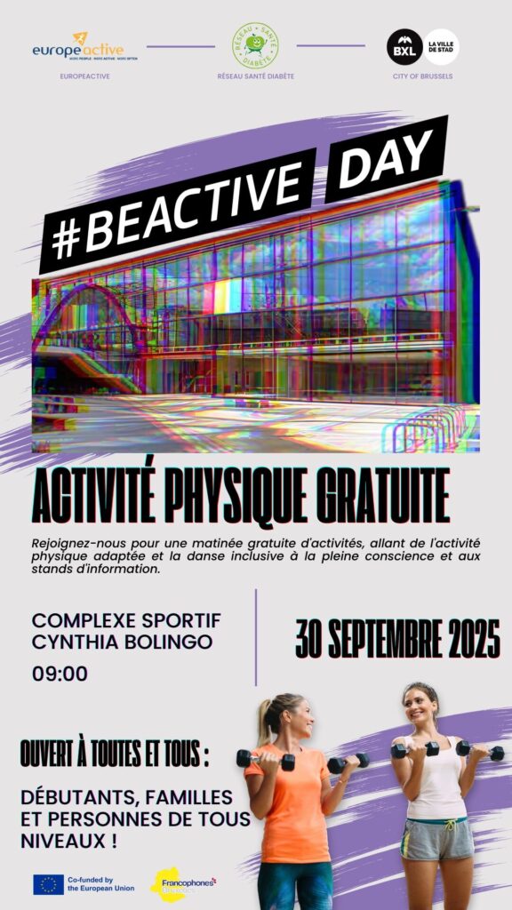 Envie de bouger dans une ambiance conviviale et inclusive ? Rejoignez-nous pour une journée 100% bien-être et activité physique gratuite, organisée par EuropeActive, en partenariat avec le Réseau Santé Diabète-Bruxelles et avec le soutien de la Ville de Bruxelles.